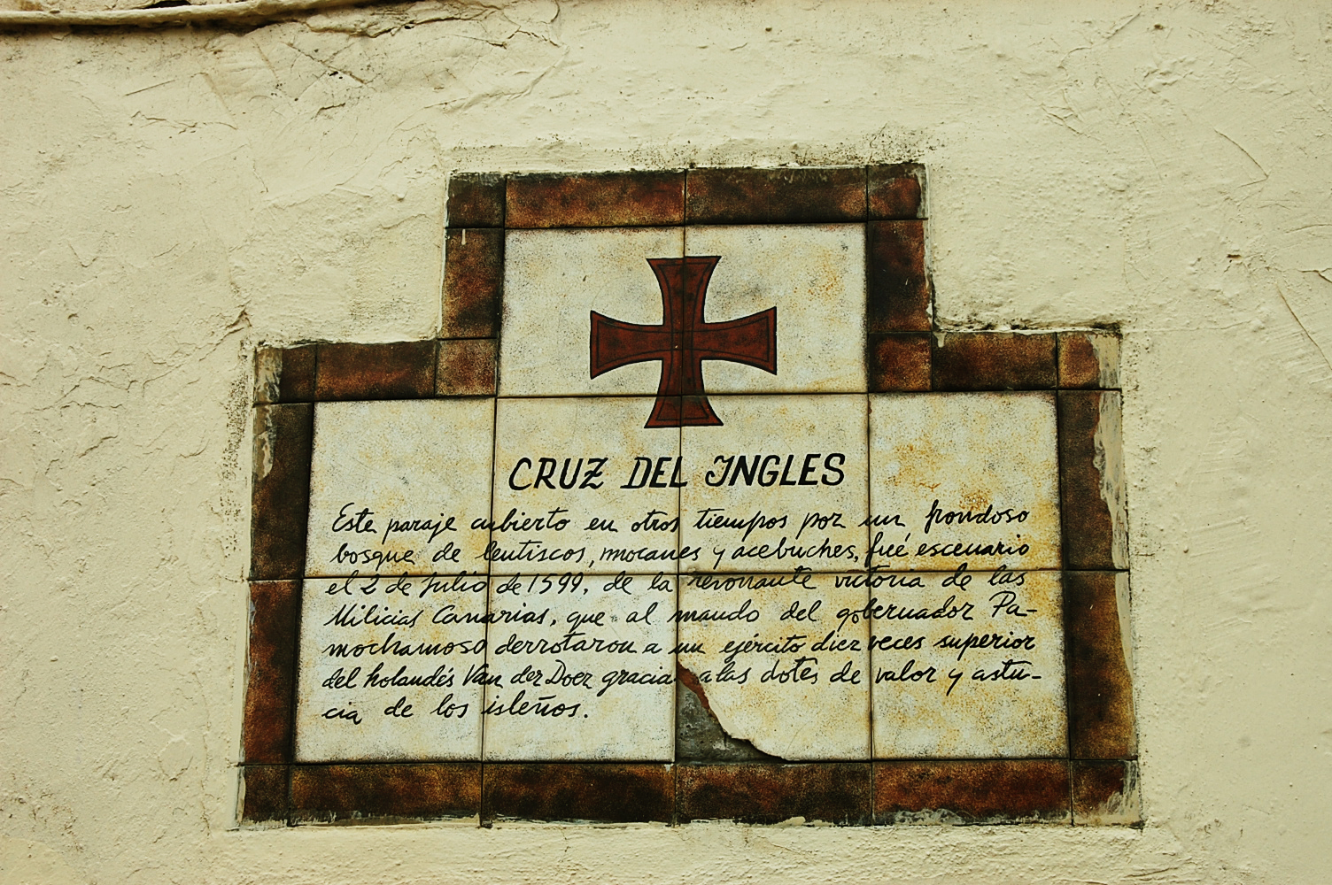 En esta entrada, también quisiera contarles cómo mis pasos me llevaron a realizar el camino que Luisa recorrió el día de calima cuando Rita Galiano la envió a cambiar unos zapatos a Tafira. En la curva que los satauteños llaman “Curva del Inglés” pude fotografiar la placa que recuerda parte de la historia de la zona.